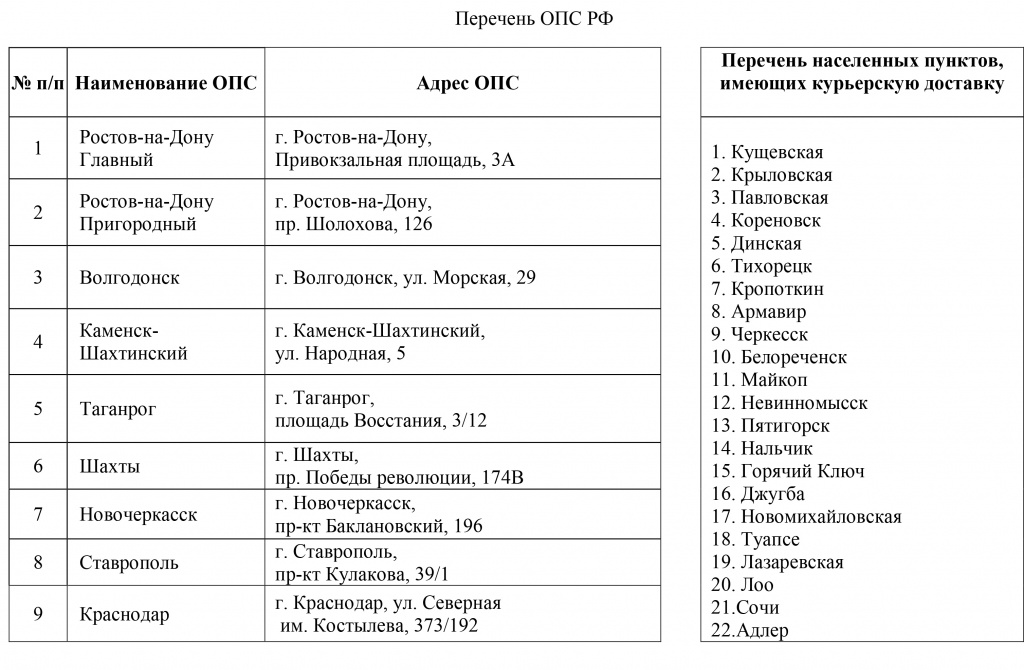 Перечень ОПС Почты ЛНР.